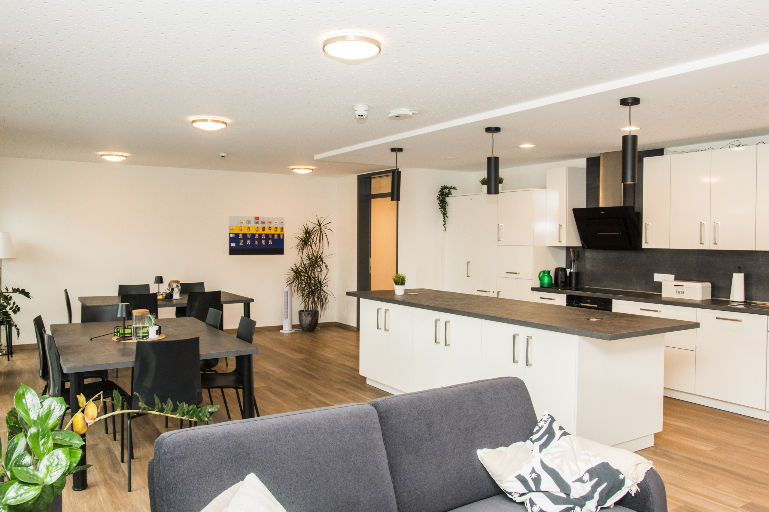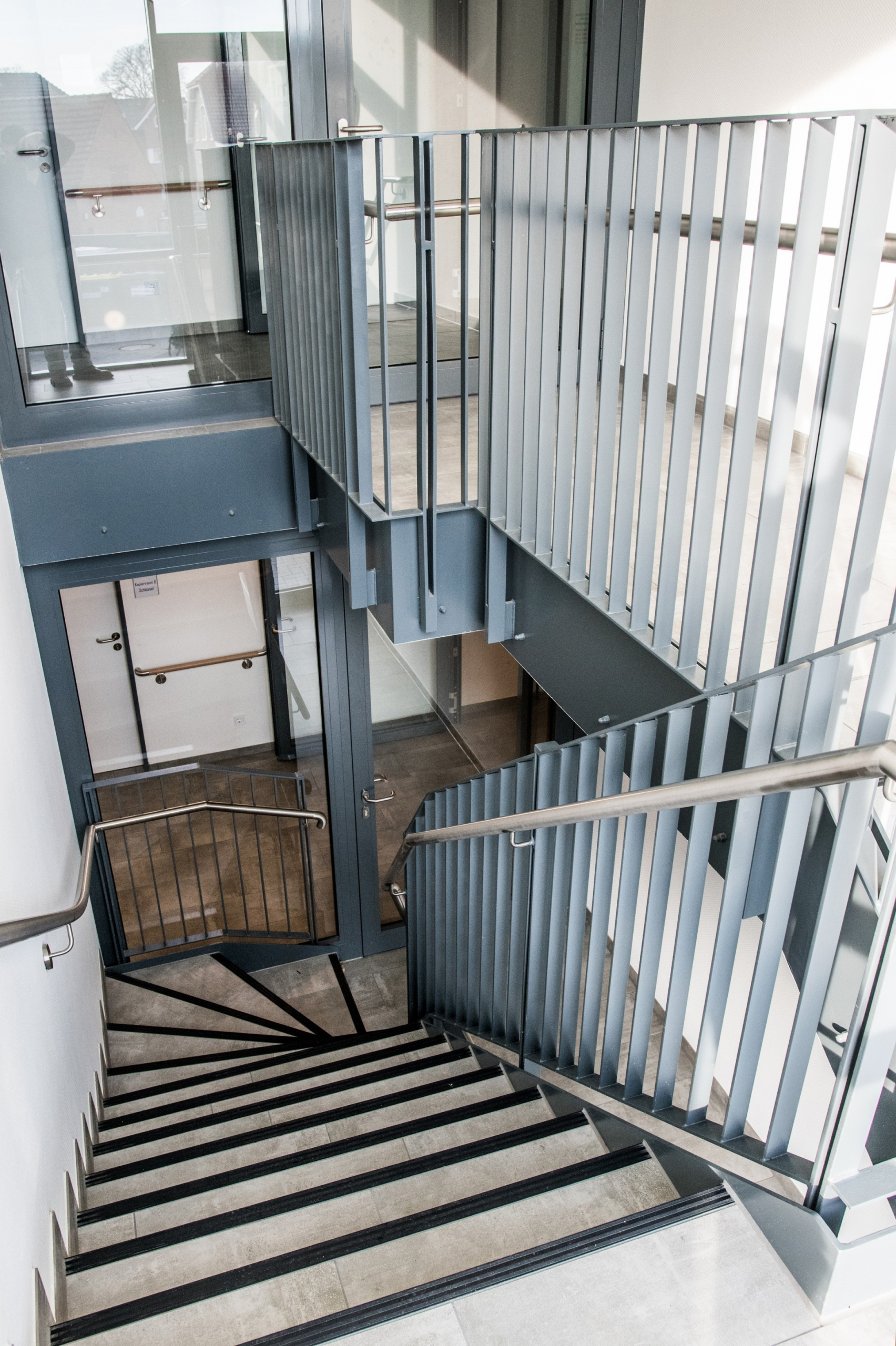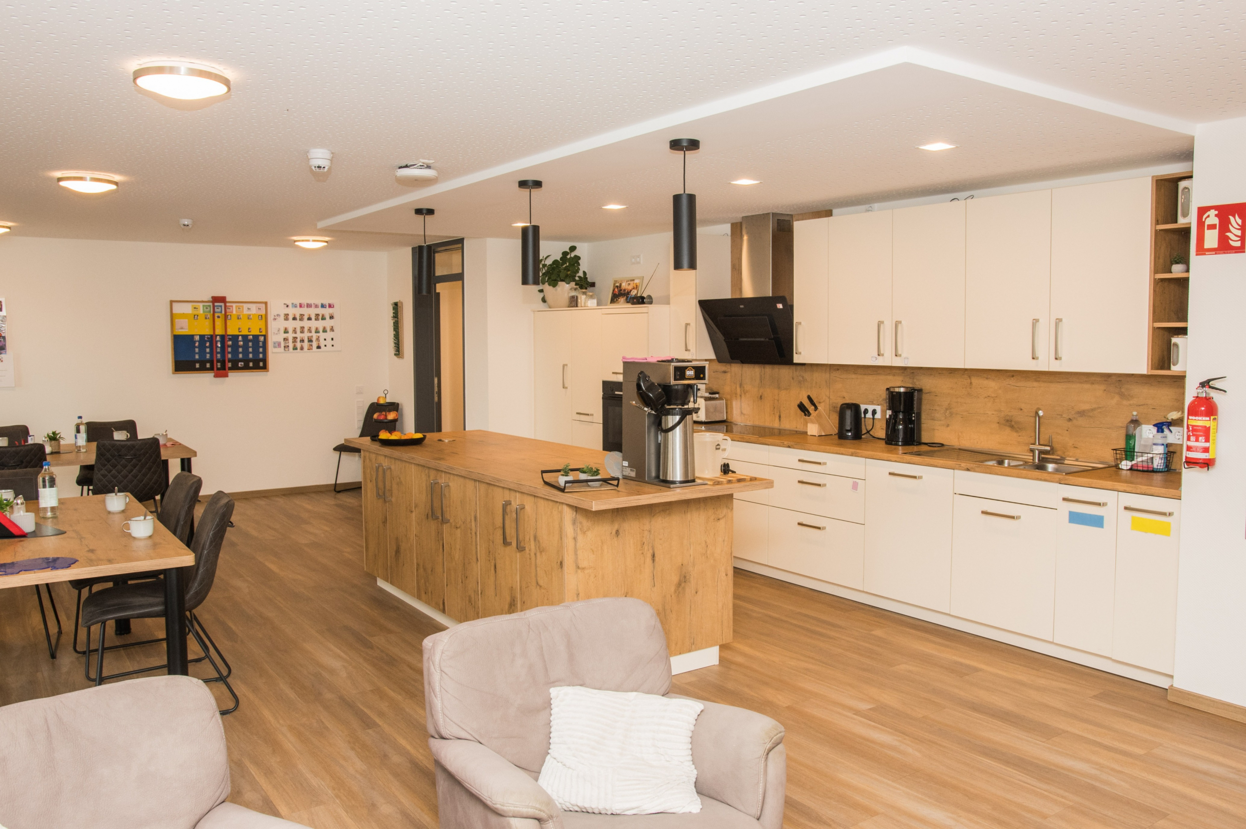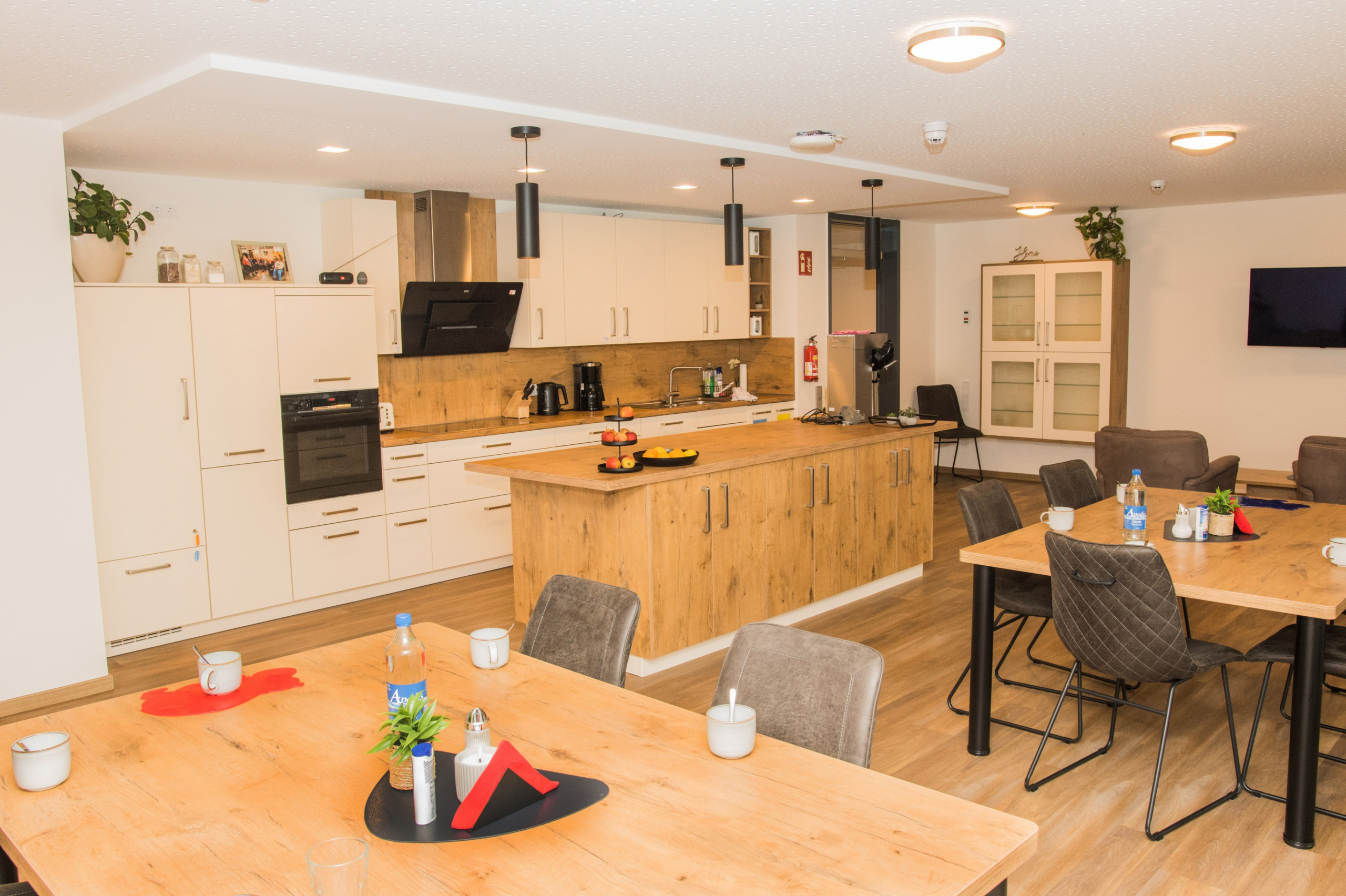 Auf dem Grundstück eines alten Wohnheims entstand eine moderne Wohnanlage, die Menschen mit Einschränkungen ein selbstbestimmtes, würdevolles und gemeinschaftliches Leben ermöglicht. Das neue Gebäude ersetzt die veralteten Einzel- und Doppelzimmer sowie Gemeinschaftsbäder und erfüllt nun höchste Anforderungen an Barrierefreiheit und Teilhabe. Das Konzept umfasst zwei Gebäudewürfel mit jeweils einem hellen Lichthof. Jeder Würfel beherbergt eine Wohngemeinschaft im Erdgeschoss und eine im Obergeschoss. Jede Wohngemeinschaft verfügt über zehn Einzelzimmer mit eigenem barrierefreiem Bad sowie einen großzügigen Wohn- und Essbereich. Hauswirtschaftsraum, Sterilraum, Vorratsraum und ein Büro für Gruppenleitung und Mitarbeitende ergänzen das Angebot. Ein verbindender Baukörper mit Treppenhaus und Aufzug sorgt für barrierefreie Erschließung. Im Erdgeschoss ist ein Bereich für die Nachtwache mit eigenem Bad untergebracht. Hier befinden sich außerdem Lagerflächen, Abstellräume, ein Personalaufenthaltsraum mit WC sowie ein Pflegebad für alle Wohngruppen. Die Anlage ist funktional, wohnlich und flexibel nutzbar. Sie bietet Sicherheit, Orientierung und Gemeinschaft, zugleich Freiraum für selbstbestimmtes Leben. Durch die klare Struktur und flexible Raumgestaltung ist perspektivisch auch eine alternative Nutzung, z. B. als Seniorentagesstätte, möglich.